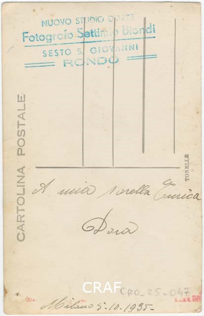 A 13 >MILANO 5.10.1935 GIOVANE DELLA ZONA DI FERMO EMIGRATA A MILANO