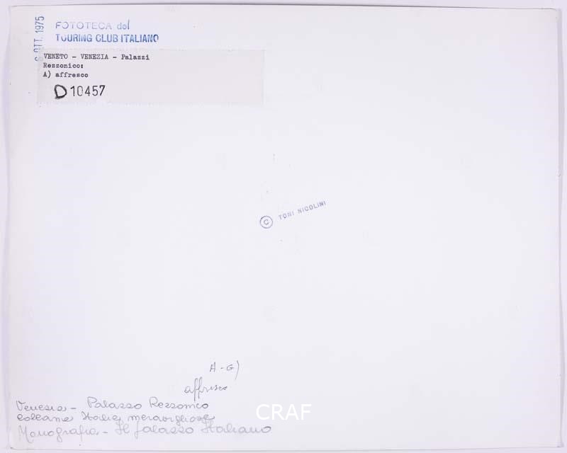 "Allegoria nuziale" di Giovanni Battista Tiepolo sul soffitto dell'omonima sala al primo piano di Ca' Rezzonico. Scatto realizzato nell’ambito della campagna fotografica per il volume Il palazzo italiano TCI del 1975, ma non pubblicato.