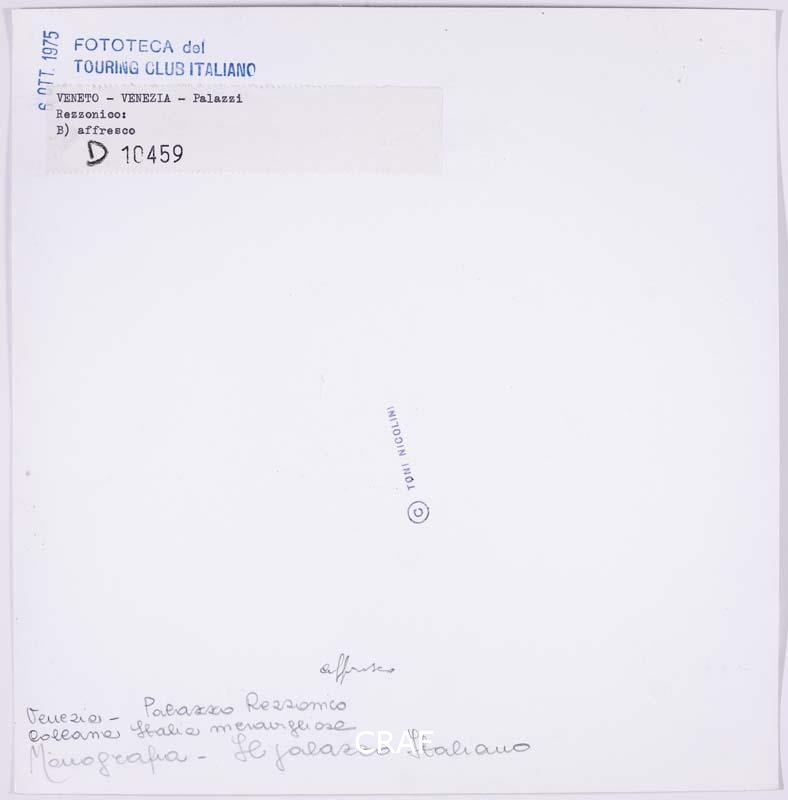 "Allegoria nuziale" di Giovanni Battista Tiepolo sul soffitto dell'omonima sala al primo piano di Ca' Rezzonico. Scatto realizzato nell’ambito della campagna fotografica per il volume Il palazzo italiano TCI del 1975, ma non pubblicato.