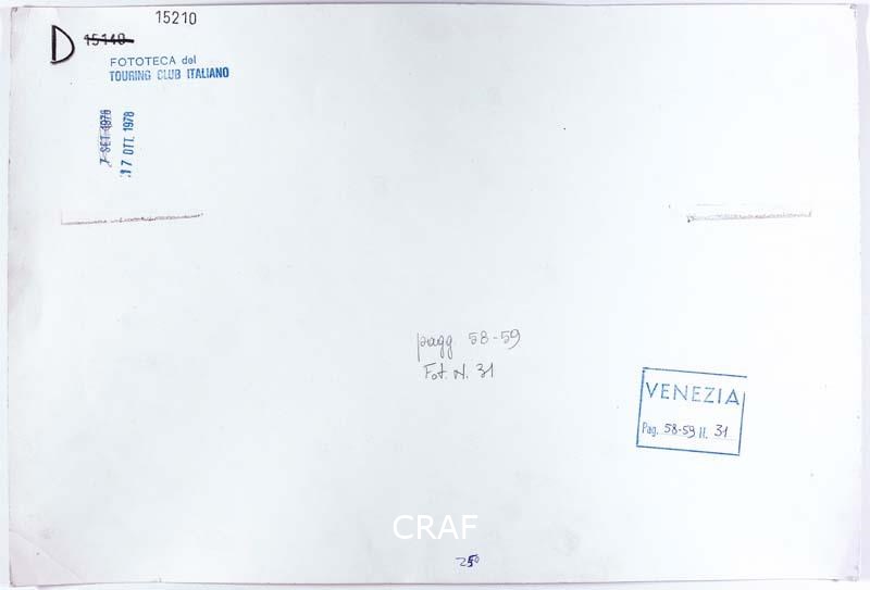 Androne e cortile in rio S. Lorenzo. Didascalia riportata sotto all'immagine pubblicata nel volume Venezia TCI del 1978 (immagine n.31, pagg. 58-59).