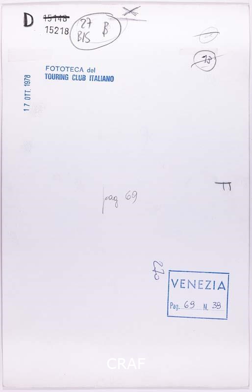 Angelo in calle Magno a Castello. Didascalia riportata sotto all'immagine pubblicata nel volume Venezia TCI del 1978 (immagine n. 39, pag. 69).