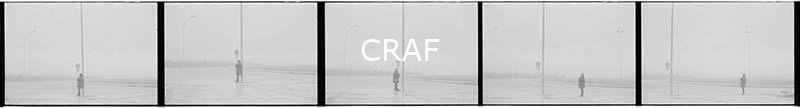 Veduta della periferia di Avezzano in un giorno di nebbia. Una donna attende qualcuno sul marciapiede. Il negativo fa parte di una sequenza di cinque scatti.