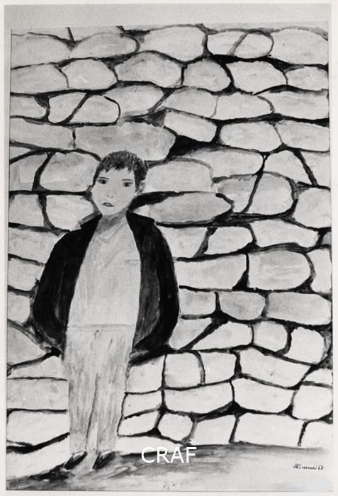 acuerello, bambino, muro, firma, datazione