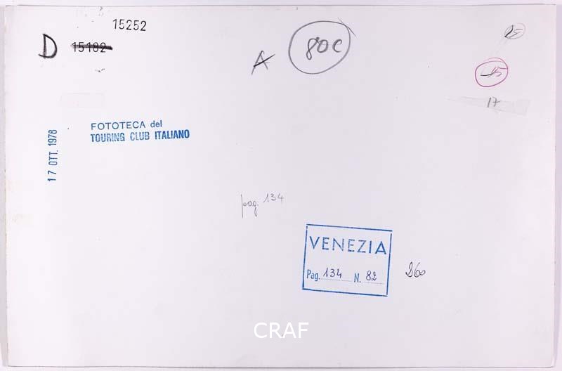 Barche da trasporto in rio del Megio a S. Giacomo dall'Orio. Didascalia riportata sotto all'immagine pubblicata nel volume Venezia TCI del 1978 (immagine n. 82, pag. 134).