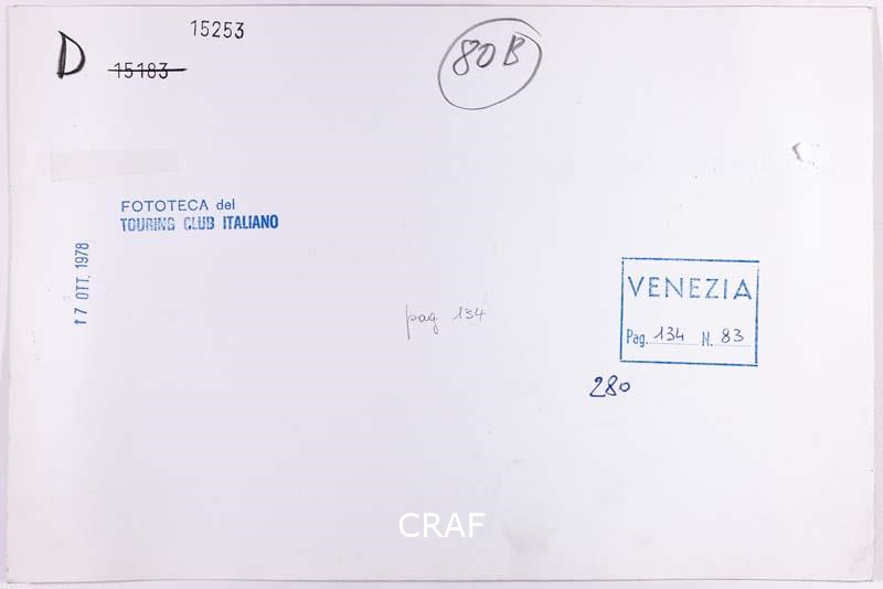Barche da trasporto in rio del Megio a S. Giacomo dall'Orio. Didascalia riportata sotto all'immagine pubblicata nel volume Venezia TCI del 1978 (immagine n. 83, pag. 134).