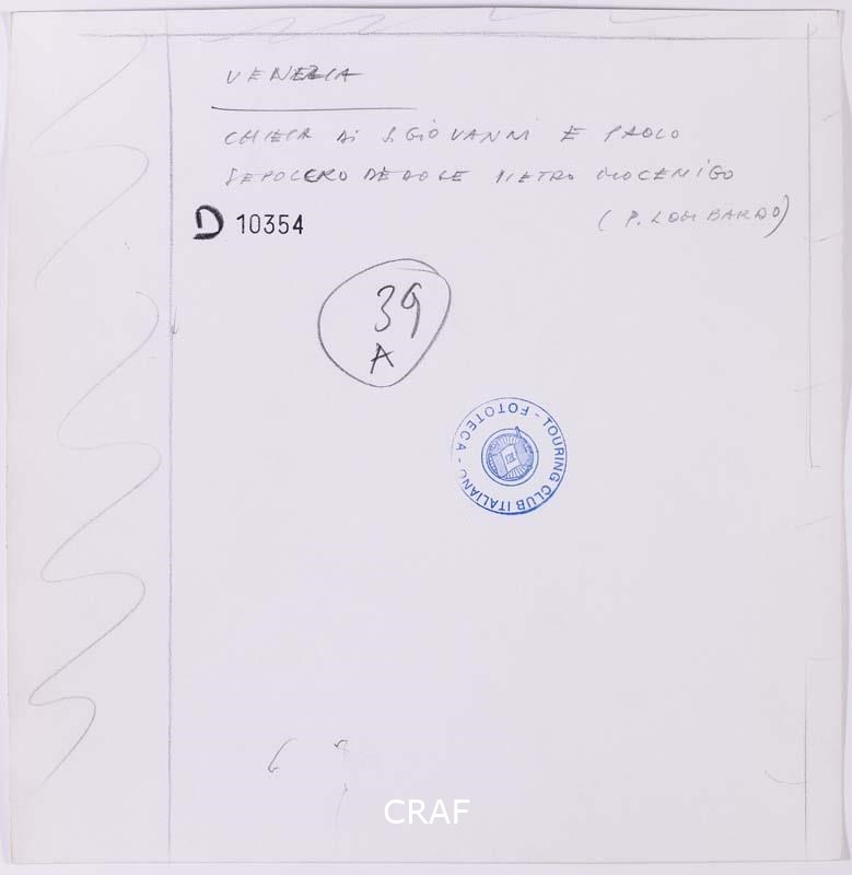 Il monumento funebre al doge Pietro Mocenigo sulla controfacciata della basilica dei Santi Giovanni e Paolo. Scatto realizzato nell'ambito della campagna fotografica per il volume Venezia TCI del 1978, ma in quell’occasione non pubblicato.