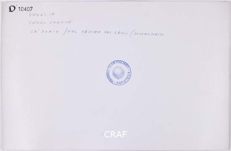 Ca' Dario e palazzo Venier dei Leoni (sede della Collezione Peggy Guggenheim) affacciati sul Canal Grande. Scatto probabilmente realizzato durante la campagna fotografica per il volume Il palazzo italiano TCI del 1975, ma in quell'occasione non pubblicato.