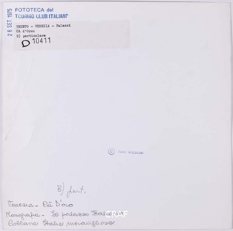 I preziosi loggiati della Ca' D'Oro. Scatto realizzato nell'ambito della campagna fotografica per il volume Il palazzo italiano TCI del 1975, alternativo a quello pubblicato a pag. 45 del volume.