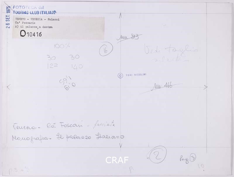 Ca' Foscari e Palazzo Giustinian affacciati sul Canal Grande. Scatto realizzato nell'ambito della campagna fotografica per il volume Il palazzo italiano TCI del 1975, ma in quell'occasione non pubblicato.