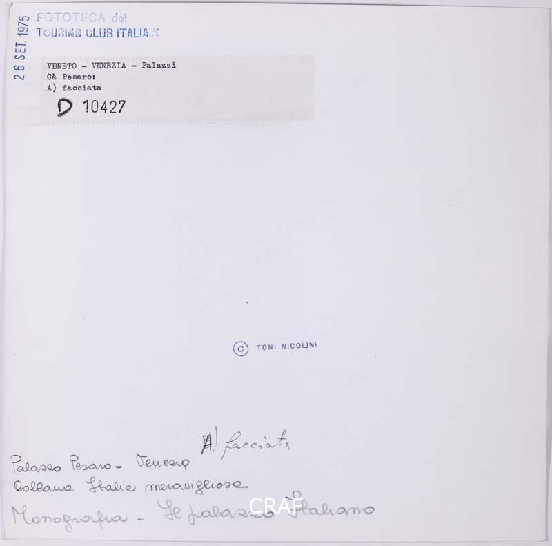 La facciata di Ca' Pesaro sul Canal Grande. Scatto realizzato in occasione della campagna fotografica per il volume Il palazzo italiano TCI del 1975, ma non pubblicato.