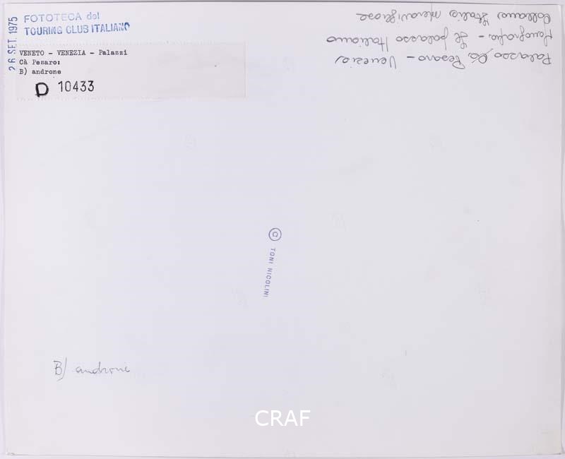 L'androne di Ca' Pesaro, adornato di busti romani. Scatto realizzato in occasione della campagna fotografica per il volume Il palazzo italiano TCI del 1975, ma non pubblicato.