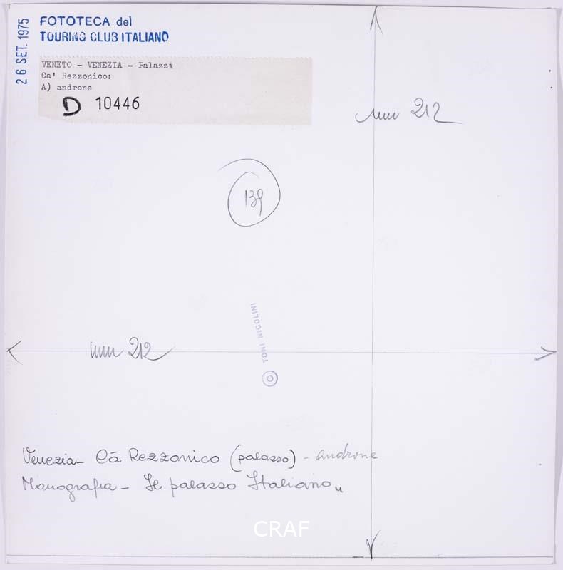 L'androne di Ca' Rezzonico. Scatto realizzato in occasione della campagna fotografica per il volume Il palazzo italiano TCI del 1975, ma non pubblicato.