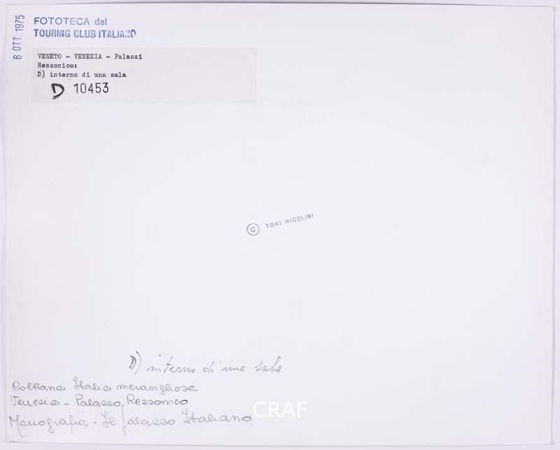 La sala del clavicembalo al secondo piano di Ca' Rezzonico. Scatto realizzato nell’ambito della campagna fotografica per il volume Il palazzo italiano TCI del 1975, ma non pubblicato.