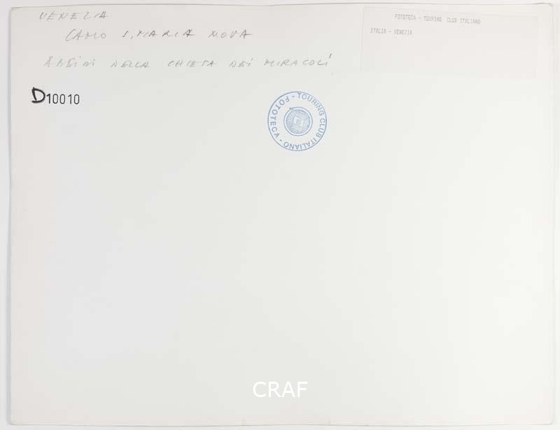 Campo Santa Maria Nova. Sullo sfondo si nota la parte absidale della chiesa di Santa Maria dei Miracoli. Scatto realizzato in occasione della campagna fotografica per il volume Venezia TCI del 1978, ma non pubblicato.