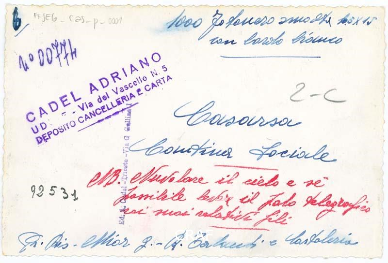 Veduta del cortile della Cantina Sociale Cooperativa, fondata nel 1931, nell’area compresa tra via XXIV Maggio e la ferrovia. Al centro dell'aiuola posa il piccolo Aldo Segale.