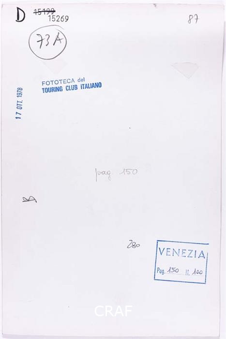 Carrelli per il trasporto di oggetti e mercanzie sui ponti veneziani. Didascalia riportata sotto all'immagine pubblicata nel volume Venezia TCI del 1978 (immagine n. 100, pag. 150).