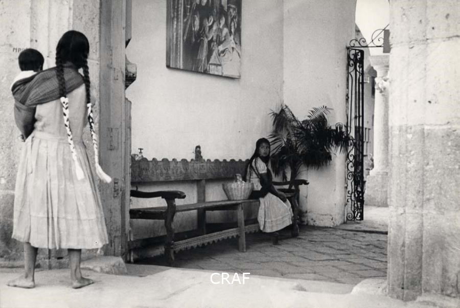 donna, bambini, bambina, ingresso, atrio, panca, cancello, pianta