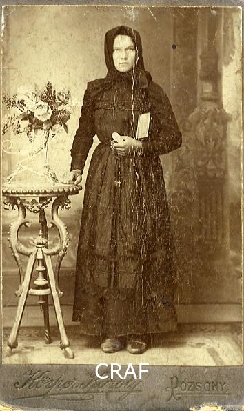 Ritratto a figura intera di suor Giovanna, al secolo Emilia Antonia Corradini, nata a Udine il 13 Dicembre 1870 migrata in Ungheria, e morta a Udine al suo ritorno nella città natale nel 1911.