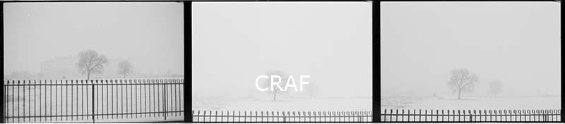 Veduta di due alberi spogli in un campo contro un cielo lattiginoso dopo una nevicata. La fotografia è scattata dal condominio "Le Rondini" nella zona nord di Avezzano (AQ), di cui in basso si riconosce la recinzione esterna.