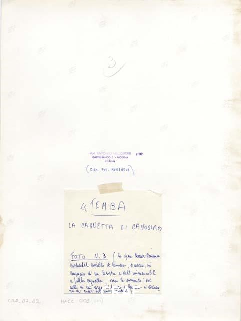 Foto N.3(la Sig.ra Ferrari Gemma, custode del castello di Canossa, si avvia in compagnia di un turista e della fedele cagnetta, verso la sommità delcolle su cui sorge il museo di Canossa vicino ai ruderi dell'antico castello)