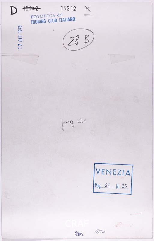 Giardinetto segreto a Dorsoduro. Didascalia riportata sotto all'immagine pubblicata nel volume Venezia TCI del 1978 (immagine n. 33, pag. 61).