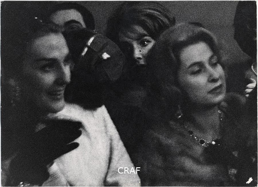 Teatro. Ritratto di tre donne.Primo piano volti. Guanti. Gioielli.