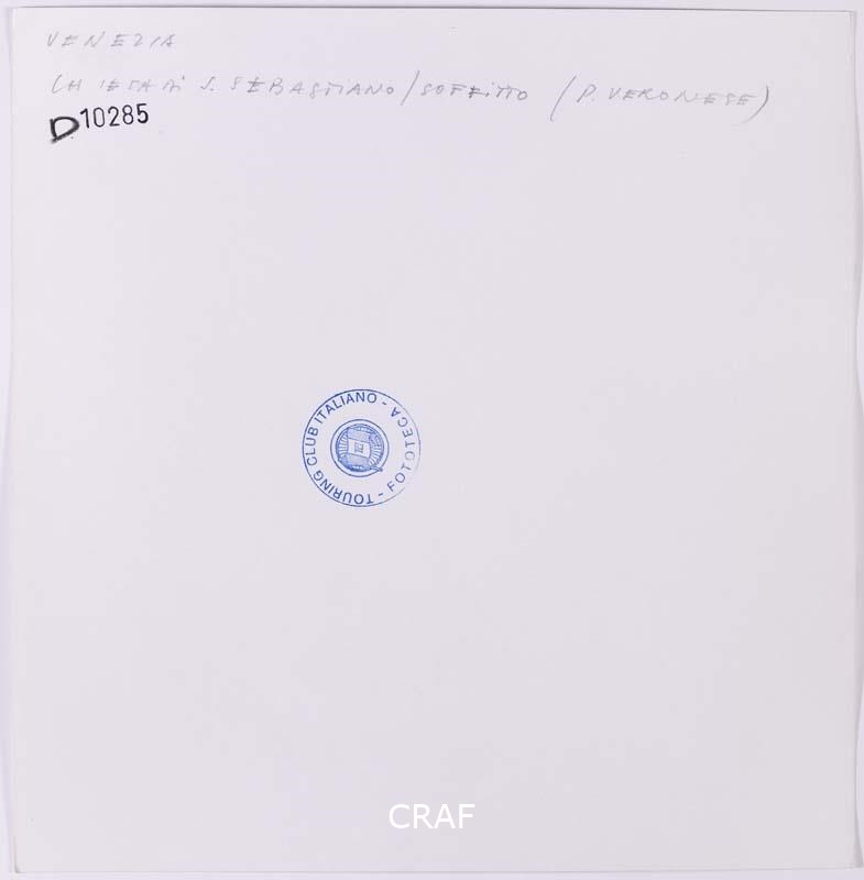 Il soffitto della navata della chiesa di San Sebastiano con i dipinti del Veronese. Scatto realizzato nell'ambito della campagna fotografica per il volume Venezia TCI del 1978, ma in quell’occasione non pubblicato.