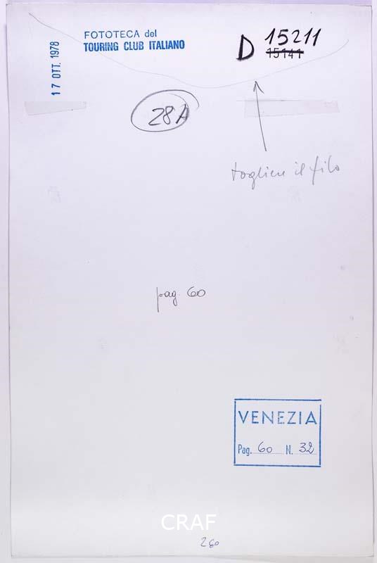 Il cortile di palazzo Pesaro degli Orfei a S. Benedetto. Didascalia riportata sotto all'immagine pubblicata nel volume Venezia TCI del 1978 (immagine n. 32, pag. 60).