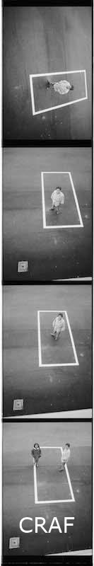 Ritratto ripreso dall'alto di un bambino in piedi al centro di uno stallo per il parcheggio vuoto presso il condominio "Le Rondini" nella zona nord di Avezzano (AQ).