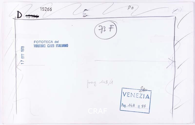 Intagliatori, laccatori, decoratori detentori di un'antica tradizione artigiana veneziana. Didascalia riportata sotto all'immagine pubblicata nel volume Venezia TCI del 1978 (immagine n. 97, pag. 148). È ritratto l'ingresso della bottega Cavalier, in zona Accademia, tutt'ora in attività.