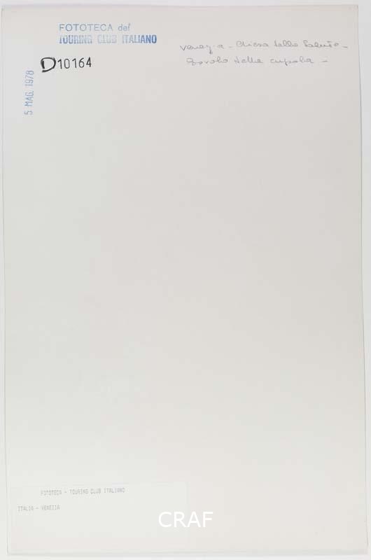 Uno dei contrafforti a volute o "bovolo" ("chiocciola" in veneziano) della cupola della chiesa della Salute. Scatto realizzato nell'ambito della campagna fotografica per il volume Venezia TCI del 1978, ma in quell’occasione non pubblicato.