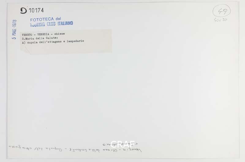 La cupola della chiesa della Salute vista dall'interno, al centro l'imponente lampadario. Scatto realizzato nell'ambito della campagna fotografica per il volume Venezia TCI del 1978, ma in quell’occasione non pubblicato.