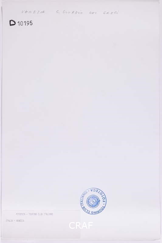 La chiesa cristiano-ortodossa di San Giorgio dei Greci, con il caratteristico campanile inclinato, vista dal ponte de l'Osmarin. Scatto realizzato nell'ambito della campagna fotografica per il volume Venezia TCI del 1978, ma in quell’occasione non pubblicato.