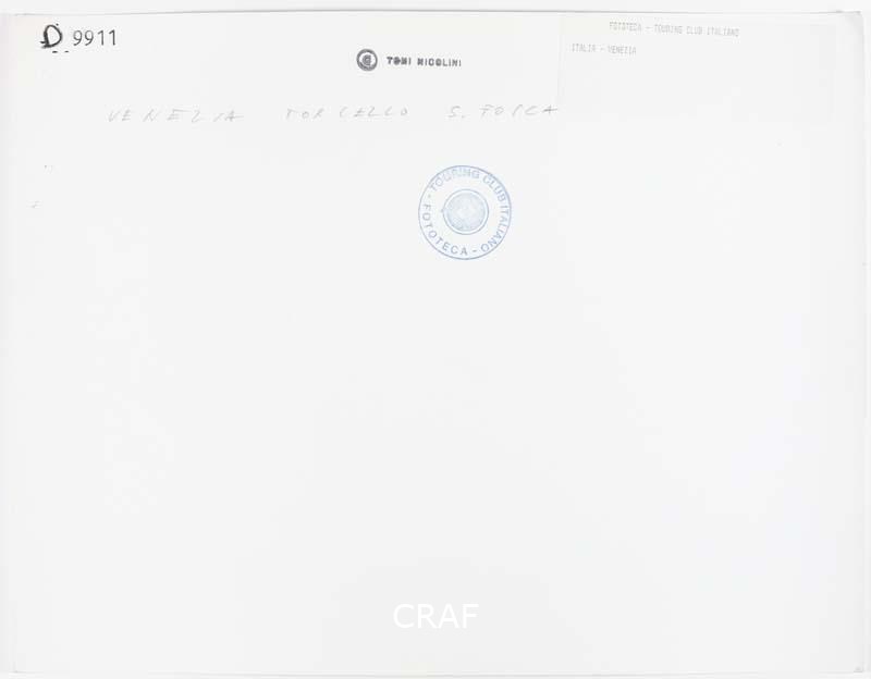 La chiesa di Santa Fosca a Torcello, alle sue spalle si intravede la Basilica di Santa Maria Assunta. Scatto realizzato nell'ambito della campagna fotografica per il volume Venezia TCI del 1978, ma in quell’occasione non pubblicato.