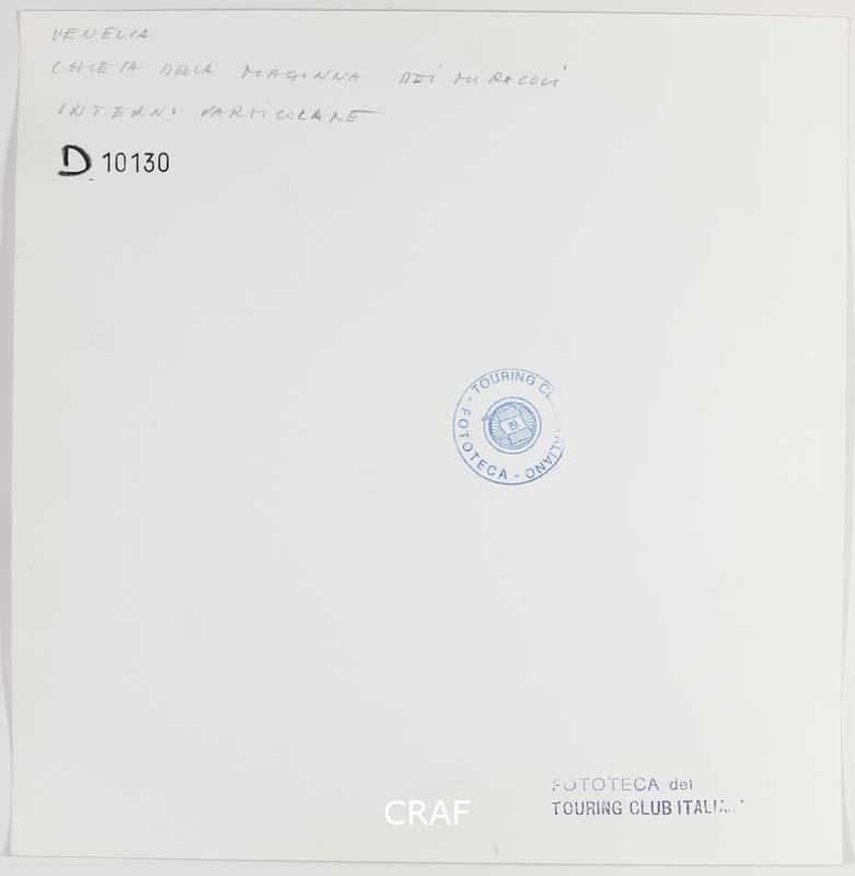 Particolare dell'apparato scultoreo opera di Tullio e Antonio Lombardo all'interno della chiesa di Santa Maria dei Miracoli. Scatto realizzato nell'ambito della campagna fotografica per il volume Venezia TCI del 1978, ma in quell’occasione non pubblicato.