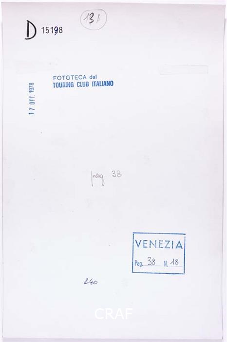 La Scuola di S. Marco, l'isola del Cimitero e Murano dal campanile di S. Marco. Didascalia riportata sotto all'immagine pubblicata nel volume Venezia TCI del 1978 (immagine n. 18, pag. 38).