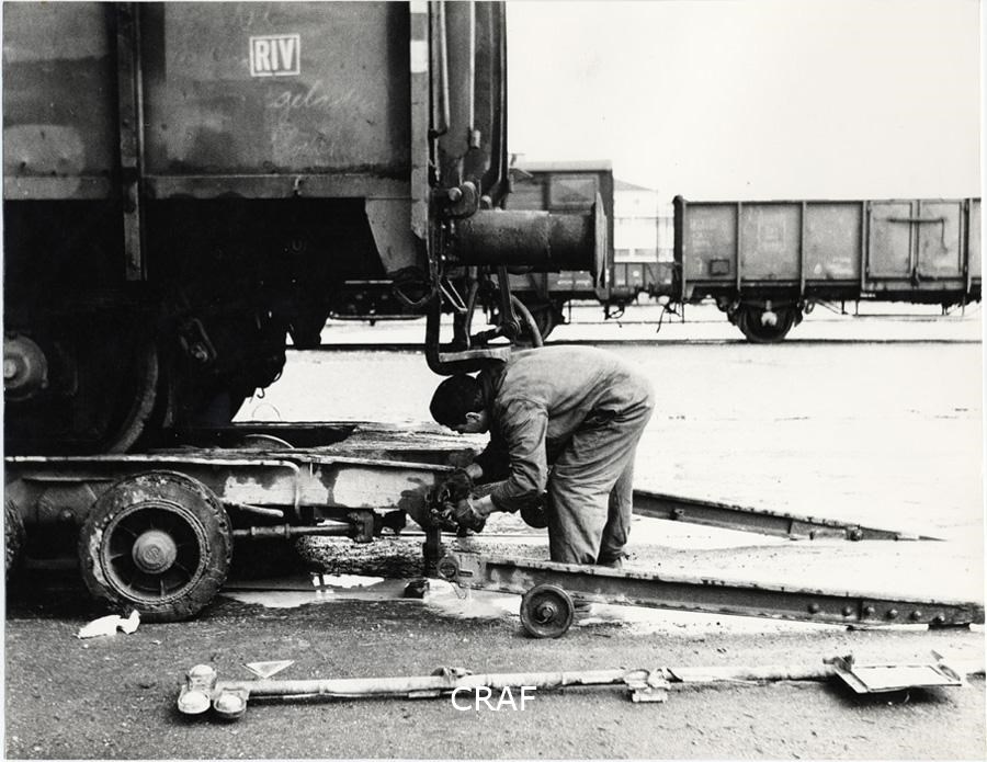 Brescia. Ferrovia. Vagoni ferroviari. Uomo. Ferroviere. Carrello.