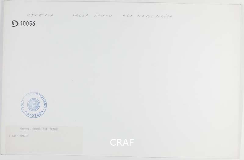 L'Ala Napoleonica (o Procuratie Nuovissime) fotografata dal tetto delle Procuratie Vecchie. Un gonfalone pubblicizza la mostra "L'altra Venezia di Giacomo Guardi" tenutasi tra maggio e giugno del 1977. Scatto realizzato durante la campagna fotografica per il volume Venezia TCI del 1978, ma non pubblicato.