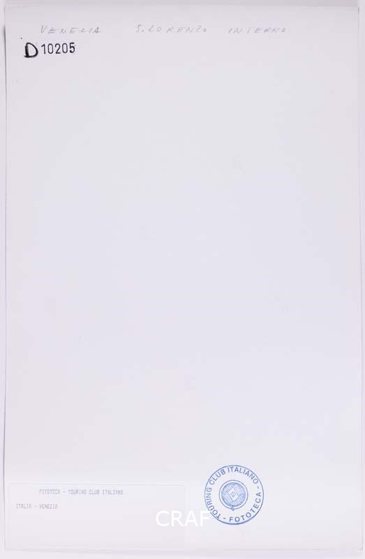 Vista interna della chiesa di San Lorenzo, con il notevole altare bifacciale a tre aperture dello scultore Girolamo Campagna. Scatto realizzato nell'ambito della campagna fotografica per il volume Venezia TCI del 1978, ma in quell’occasione non pubblicato.