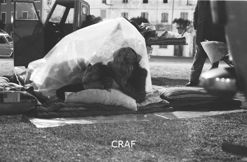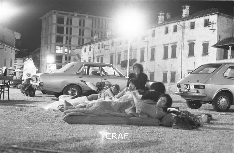 Un gruppo di ragazzi accampato in Piazza Italia a Maniago