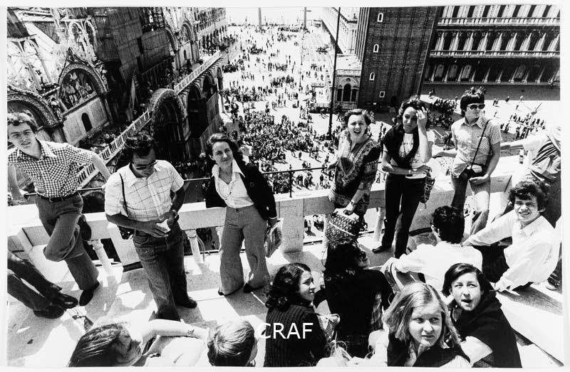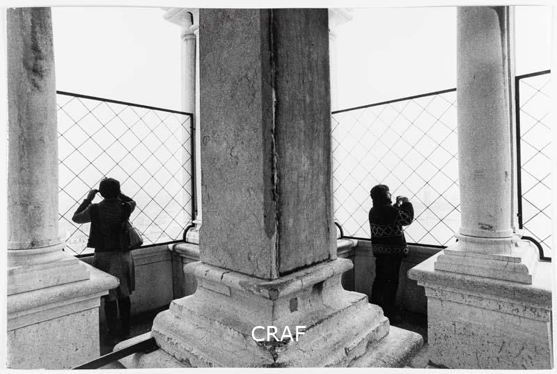 Turisti osservano il panorama dalla cella campanaria di San Marco. Scatto...