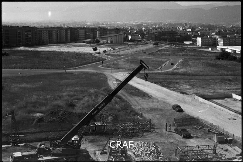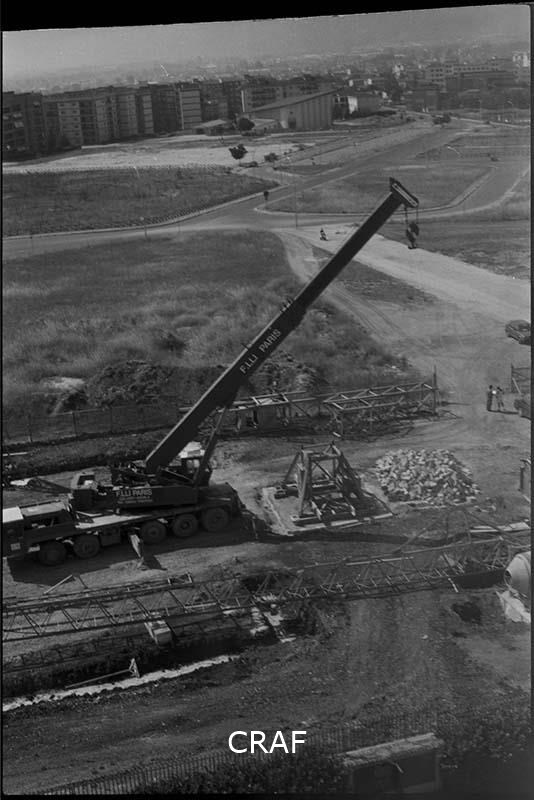 Fasi iniziali del montaggio di una gru a torre all'interno di un cantiere di...