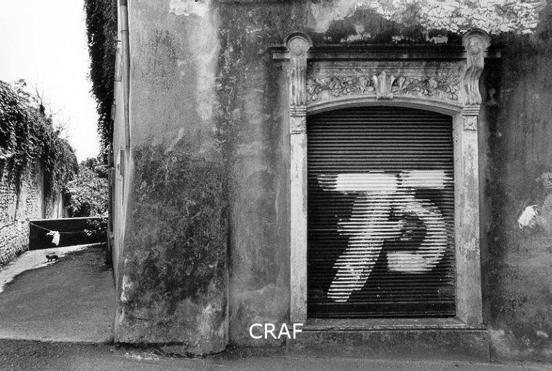 Valvasone, porta con serranda abbassata con il numer 75 dipinto sopra