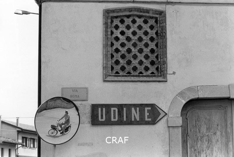 Valvasone, via Roma, specchio e cartello stradale "Udine"
