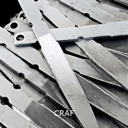 Serie di lame non montate. Fase del processo di lavorazione dei coltelli....