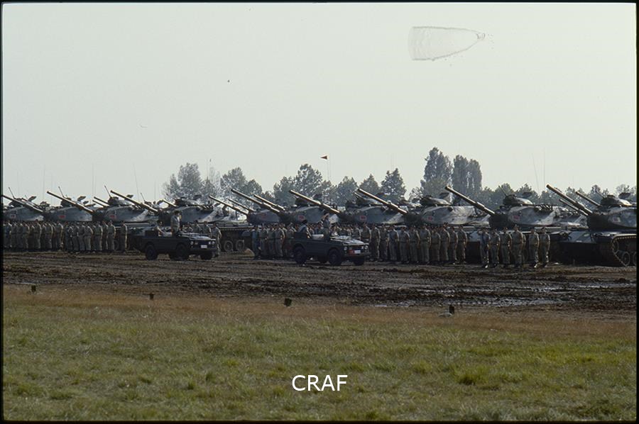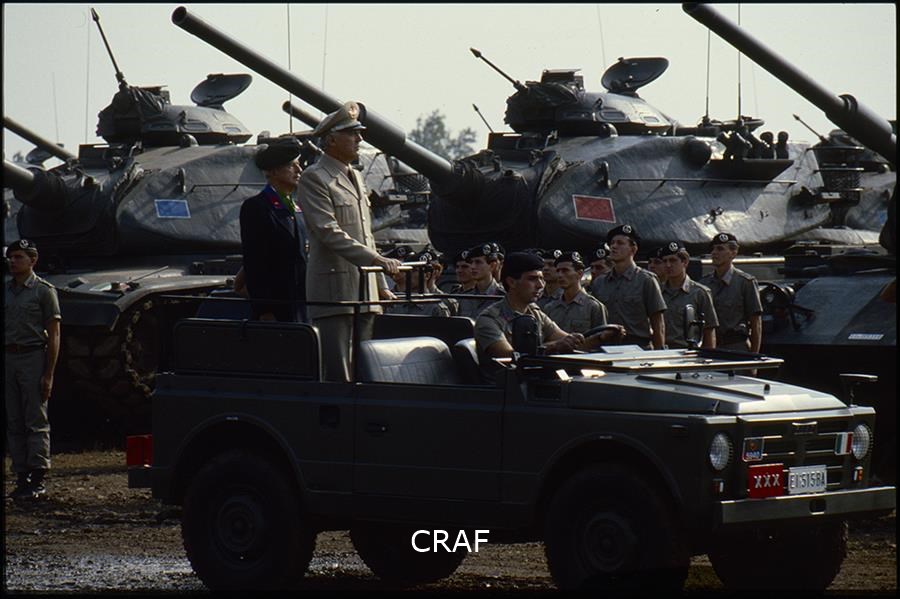 Schieramento di carri armati e carristi al passaggio delle autorità