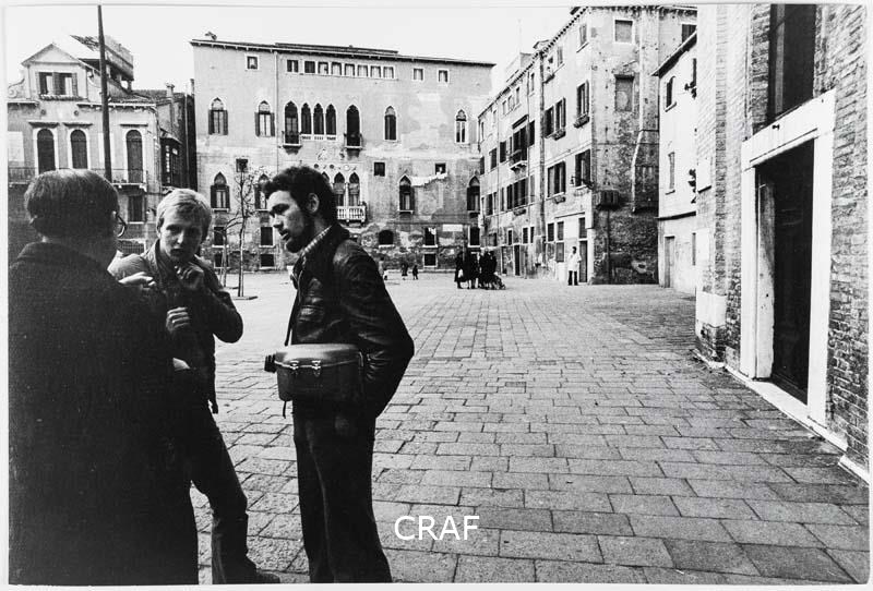 Due giovani intenti a leggere il Gazzettino in campo Sant'Agnese, nei dintorni...