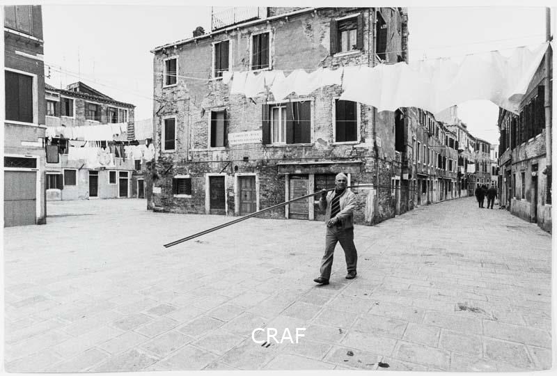 Un uomo attraversa campo Ruga, situato tra l'Arsenale e S. Pietro in Castello....