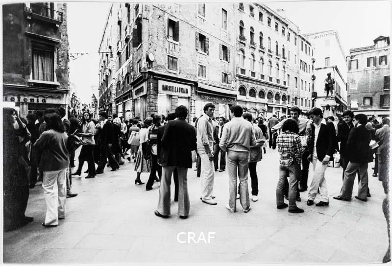 Un affollato campo San Bortolomio, al centro del quale spicca la statua del...
