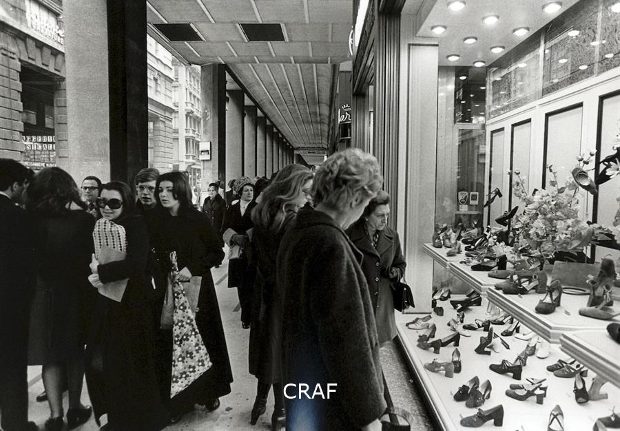Gente a passeggio per il corso, in primo piano alcune donne guardano una...